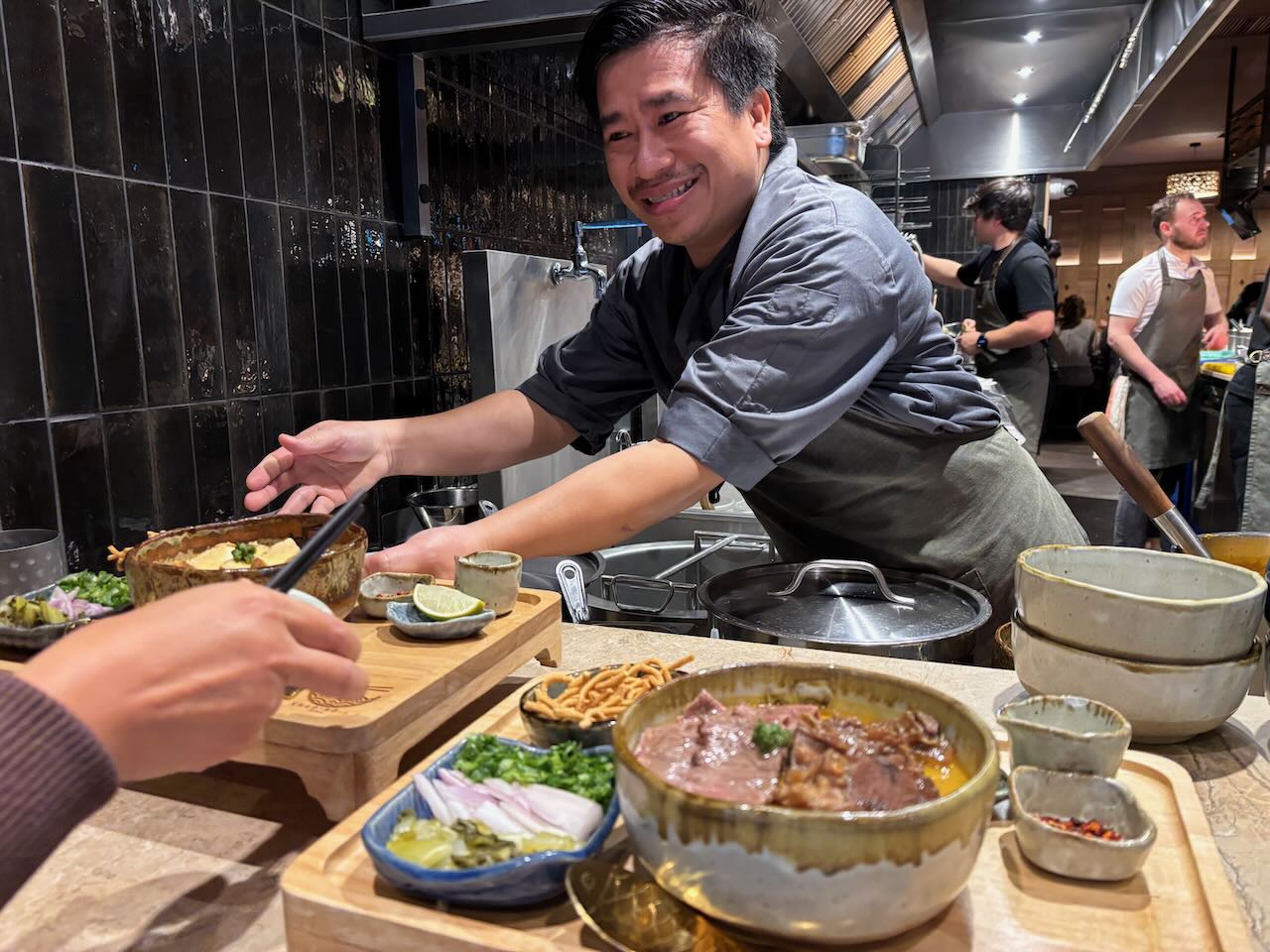 Unless you want a meal of starters, you’ll be having khao-soi for main; it’s not so much a signature dish as the only dish on the menu, albeit served with almost a dozen variations in topping. I went for a mix of torched and braised beef, while Maureen chose the tofu. The tofu was nice, sturdy with a bit of crisp to the edges. If I came back, I’d skip the thin slices of scorched chuck-eye and stick with the braised shank. It was marinated and braised to a sweet and almost jammy stickiness, I could have had a plate of it happily. But of course the khao-soi soup and noodles are the main event. The soup was exactly as I remember it, just the right level of heat, made silky and rich with coconut milk, fragrant with all those northern Thai herbs and spices. The noodles are chunky and toothsome, not as thick as udon but thicker than ramen. And there’s sides of chopped herbs, pickled mustard greens, chilli flakes and coconut milk to stir in to taste, along with the little bowl of deep-fried crispy noodle bits for topping.I loved my bowl of khao-soi at Khao-So-I and you should go along and try if you’ve never had the original stuff in Thailand, because this is it. That said, it’s their only thing and it averages around £25 a bowl, topping up to £35 per person for a meal of starter-and-main. So it’s priced a bit higher than top-notch ramen. Probably deservedly. So I’ll be popping back next time I really need a khao-soi fix.